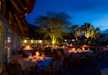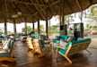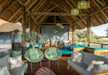 Das Restaurant und der Bereich des Schwimmbeckens bieten ebenfalls gute Ausblicke auf die Tierwelt und die afrikanische Buschsavanne in der Umgebung. Die Palmen stechen in der Region hervor.