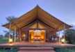 Jedes Zelt ist 20 m x 8 m groß, hat einen Holzboden und ein Zelt-Dach aus Canvas. Der Eingang verfügt über Loveseats und einen Tisch, um einen offenen Blick zu ermöglichen, gefolgt von Schiebetüren aus Glas, die in einen Raum führen, der so gestaltet ist, dass er mit den ästhetischen Farbtönen der Umgebung harmoniert. Die Bettwäsche ist sauber und komfortabel mit Baumwollbezügen, Moskitonetzen, weichen Kissen, Bettläufern und Bettdecken. Es gibt eine Matte, einen Stuhl, einen Schreibtisch, Beistelltische, eine Sitzbank und lokale Bilder. Die en-suite Badezimmer haben einen polierten Boden mit einem Kleiderschrank, einer Dusche, Bademänteln, einer Toilette und einem terrakottafarbenen Becken.