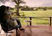 You are surrounded by indigenous trees and a watering hole which is often visited by wild animals such as giraffes.